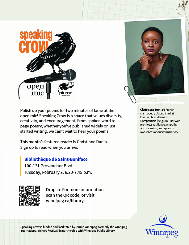 - Speaking Crow: Christiane Dunia (February 3)