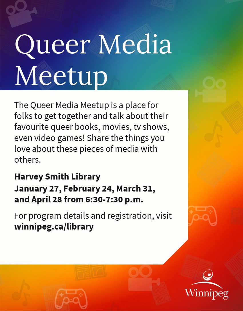 - Queer Media Meetup (February 24; March 31; April 28)