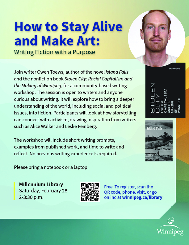 - Stay Alive and Make Art: Writing Fiction with a Purpose (February 28)