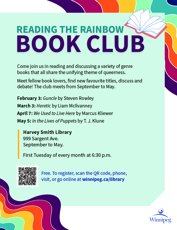 - Reading the Rainbow Book Club (February 3; March 3; April 7; May 5)