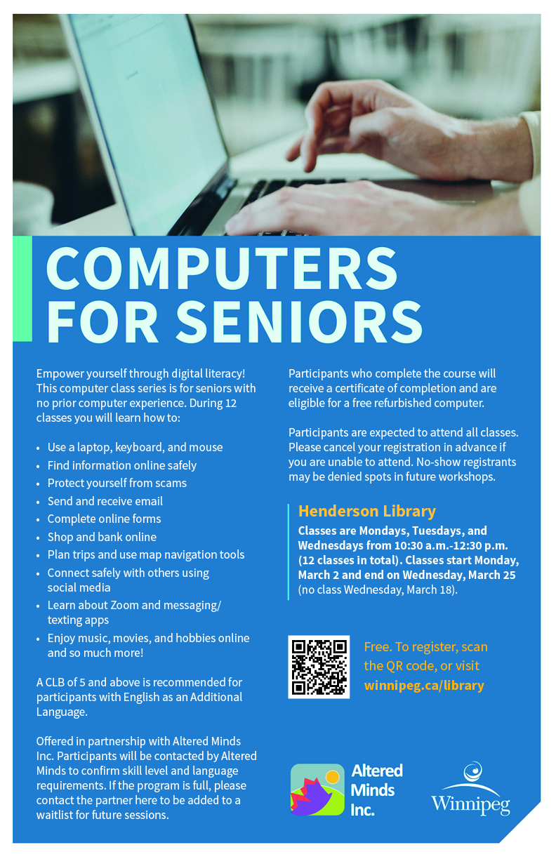 - Computers for Seniors (March 2-March 25)