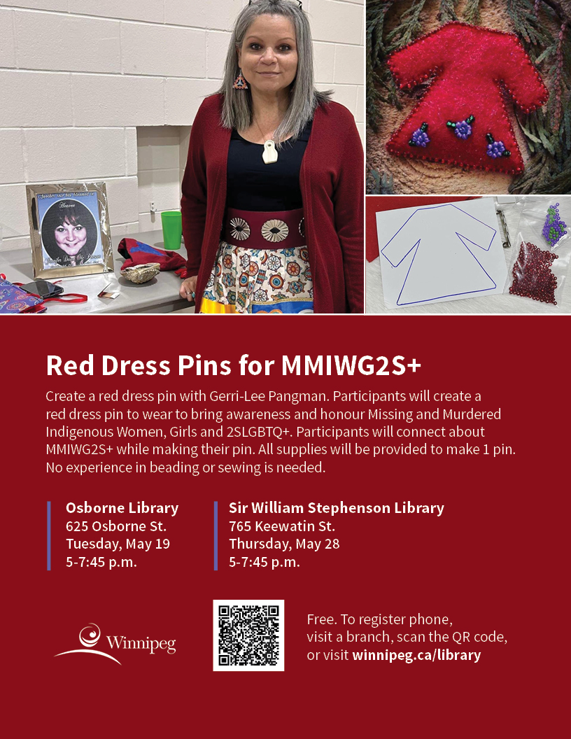 - Red Dress Pins for MMIWG2S+ (May 19 & 28)