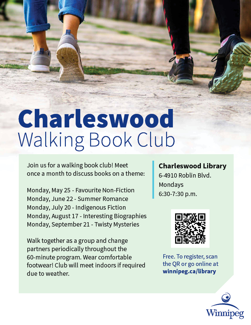 - Charleswood Walking Book Club (May 25, June 22, July 20, August 17 & September 21)