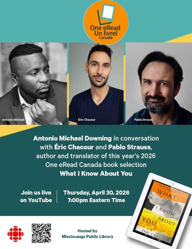 - One eRead Canada: Event with Antonio Michael Downing,Éric Chacour and Pablo Strauss (April 30)