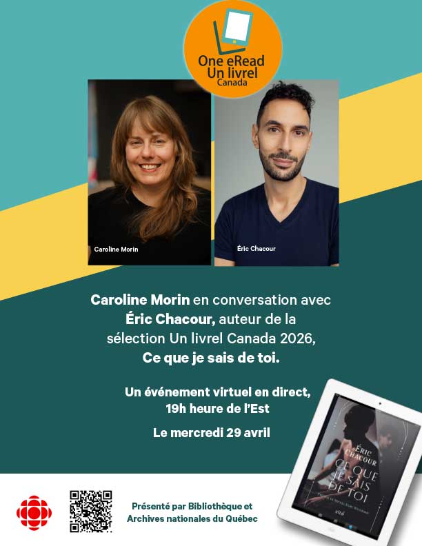 - One eRead Canada: Caroline Morin en conversation avec Éric Chacours (29 avril)
