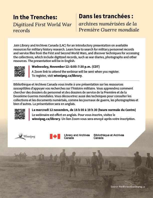 - In the Trenches, Among the Tanks: First and Second World War Records and Resources (November 12)