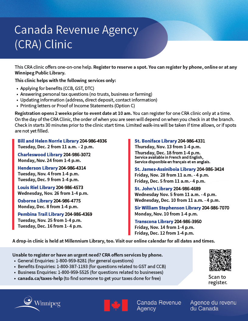 - Canada Revenue Agency (CRA) Clinic (November-December)