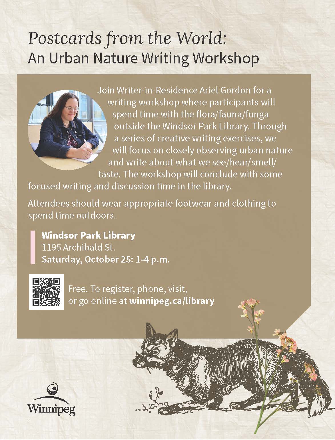 - Postcards from the World: An Urban Nature Writing Workshop (October 25)